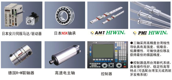 ●三軸采用高精度臺灣線性導(dǎo)軌具有高強度、低噪音、低摩擦性.可做快速位移及獲得最佳的循圓精度。